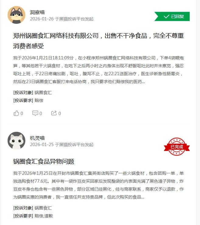 2025年,公司估计收入77。5亿元—78。5亿元,同比增加19。8%—21。3%;估计实现净利润4。43亿元至4。63亿元,同比增幅83。7%至92%。做为社区餐饮供应链品牌,锅圈从打“正在家吃暖锅、烧烤”场景,公司营收正在2022年达到71。73亿元高点,并于次年登岸港股。但上市首年业绩便呈现“变脸”,跟着公共卫生事务竣事,居家暖锅需求回落,2023年公司收入下滑15%至60。94亿元;2024年略有回暖,营收增至64。7亿元,但仍未回升至2022年的峰值程度。年报显示,2023年、2024年锅圈门店数量别离为10307家、10150家,呈现必然下滑。2025年,创始人杨明超喊出要再开1万家店的豪言,截至昔时岁尾,公司门店数量达到11566家,较岁首年月添加了1416家。值得留意的是,锅圈门店总数还逗留正在10761家,相当于第四时度3个月净增门店805家,跨越了前9个月总和,扩张提速。跟着门店规模扩大、店均收入提拔,叠加运营效率优化,配合鞭策了锅圈2025年焦点业绩目标的增加。不外,亮眼业绩难掩锅圈运营存正在的短板,其高速扩张背后的加盟模式现患正持续。据悉,锅圈99。9%的门店为加盟店,自营门店仅十余家,这种模式虽支持了企业快速扩张,却也带来了门店管控难度大、食物平安事务易发等问题。就正在近期的1月15日,杭州一名消费者通过外卖平台正在锅圈食汇订购的食材中,发觉一盒出产日期为2026年1月12日、保质期仅2天的老豆腐。经多方协商,门店最终补偿该顾客300元。针对此事,锅圈公关部答复,涉事豆腐属于公司“授权答应门店自行采购并发卖的商品品类”,根据相关合同取,储存、办理及售后义务,应由做为运营从体的加盟门店自行承担。这一回应,将品牌总部取加盟门店的义务进行了切割。据报道,2025年11月,白山一名消费者爆料其正在锅圈食汇采办的毛肚中发觉一只苍蝇;同年10月,有网友正在“七珍菌菇荟”产物中发觉;9月有消费者赞扬,锅圈食汇的暖锅底猜中呈现蛆虫,监管部分介入协调。截至目前,黑猫赞扬平台上,锅圈食汇的相关赞扬达396起,多涉及食材异物、变质、食用后腹泻等问题。